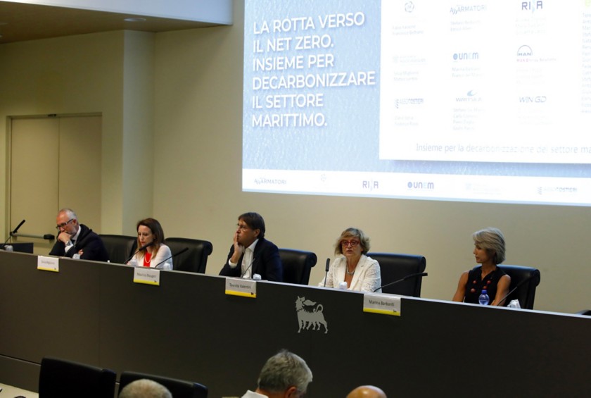On the 11th of July, a roadmap for the decarbonization of the maritime sector was presented in our Congress Hall in Rome as part of the workshop "The Route to Net Zero. Together to Decarbonize the Maritime Sector". Besides Eni, the Shipowners' Associations (Confitarma and Assarmatori), three of the largest ship engine companies (Wärtsilä, WinGD and MAN Energy Solutions), as well as Unem, Federchimica/Assogasliquidi, Assocostieri and RINA participated. The first part of the program featured participation from the shipping industry and RINA, as well as the presence of Confindustria and the Authorities of the Sea. It followed an in-depth discussion aimed at illustrating the technical results that have emerged, through three representatives who spoke on behalf of the entire group of 40 experts, and finally, the third session pulled the strings of the roadmap embellished with testimony from the Public Administration.