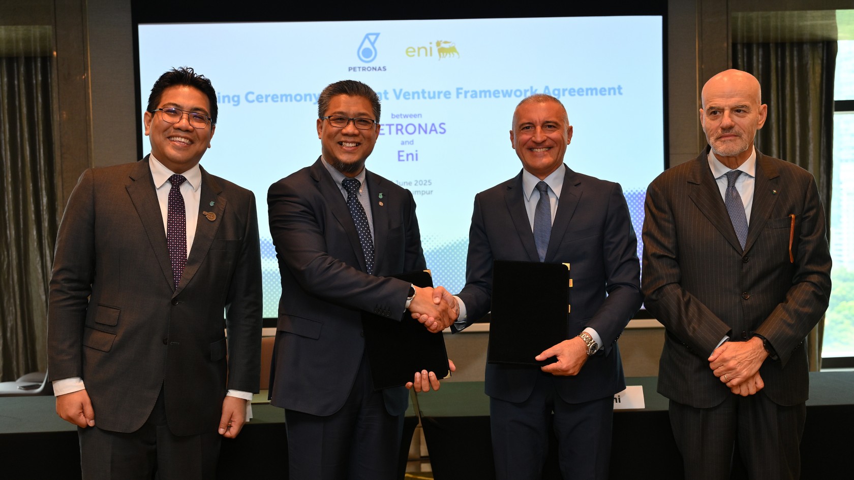 Kuala Lumpur (Malaysia), 17 June 2025 – Eni and PETRONAS have signed in Kuala Lumpur today a Framework Agreement that sets the basis for the creation of the new, jointly participated company, that will oversee assets in Indonesia and Malaysia through business combination.