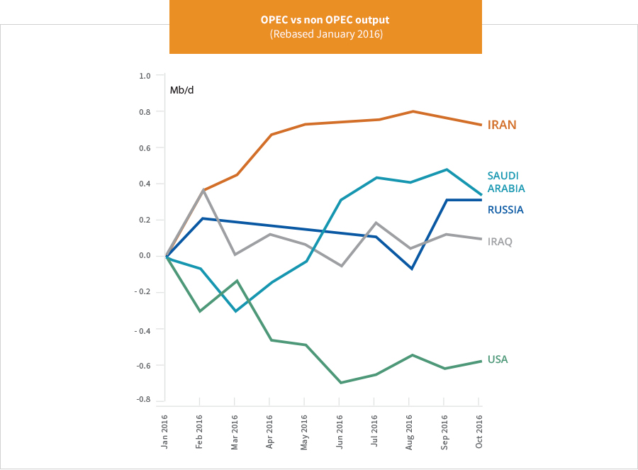 A reduction of over 1Mb/d has been agreed, limiting total production to 32.5 million bpd. OPEC returns to controlling the market.