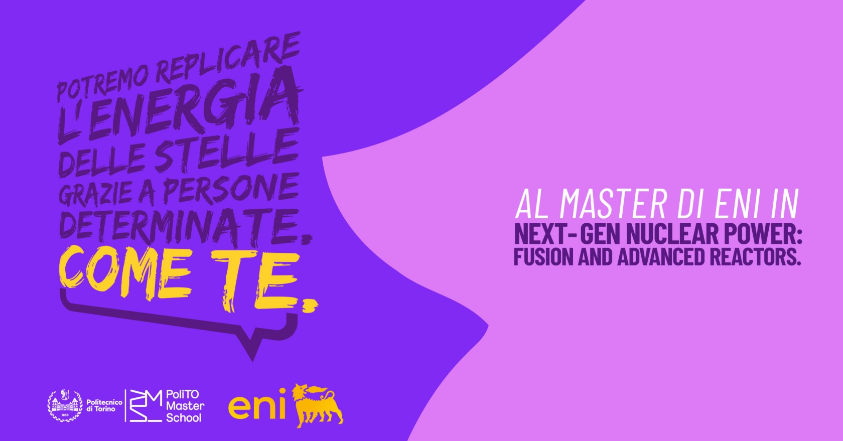 Il Master è focalizzato sull’energia da fusione, settore in cui Eni è pioniera nello sviluppo di soluzioni per il confinamento magnetico, pur fornendo una visione completa dei reattori nucleari avanzati, necessari per una piena comprensione del settore. Nel corso di dodici mesi, il programma approfondisce progettazione, gestione e manutenzione delle centrali nucleari, integrando conoscenze ingegneristiche con innovazioni nel design dei reattori, nuove tecnologie, materiali avanzati, e aspetti di sicurezza e regolamentazione.