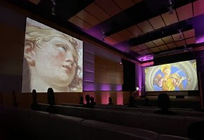 Fino al 9 maggio 2021, Intemporaneo è presente all’interno della bellissima sala Auditorium di Palazzo delle Esposizioni, allestita per l’occasione con cinque grandi schermi che circondano i visitatori: arte, luce, colore e musica, insieme, per offrire un avvolgente momento al di fuori dal tempo.