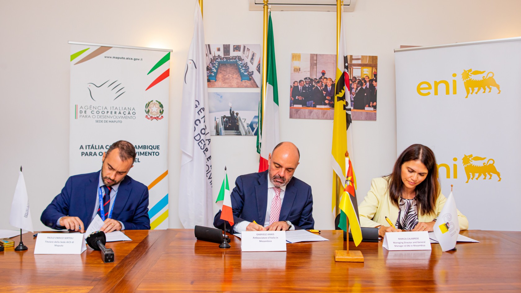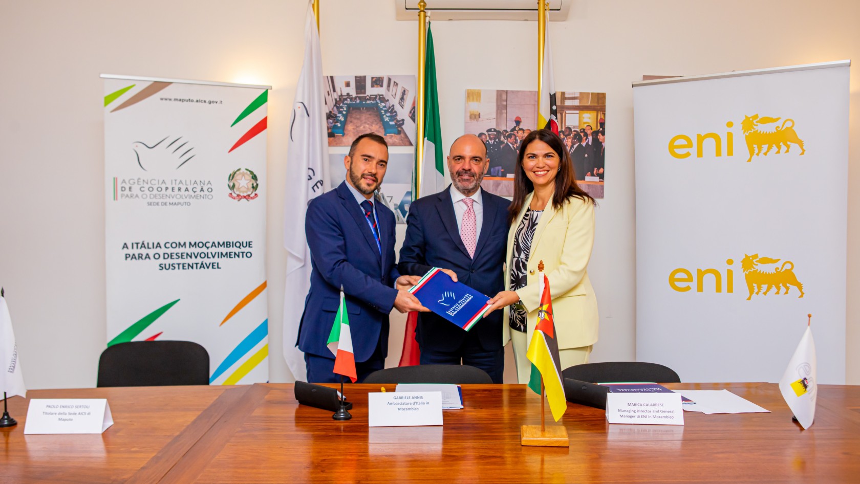 La Lettera di Intenti (LoI) è stata firmata dalla Managing Director di Eni Rovuma Basin, Marica Calabrese, e dal Direttore di AICS Maputo, Paolo Enrico Sertoli, alla presenza dell’Ambasciatore d’Italia in Mozambico, Gabriele Annis.