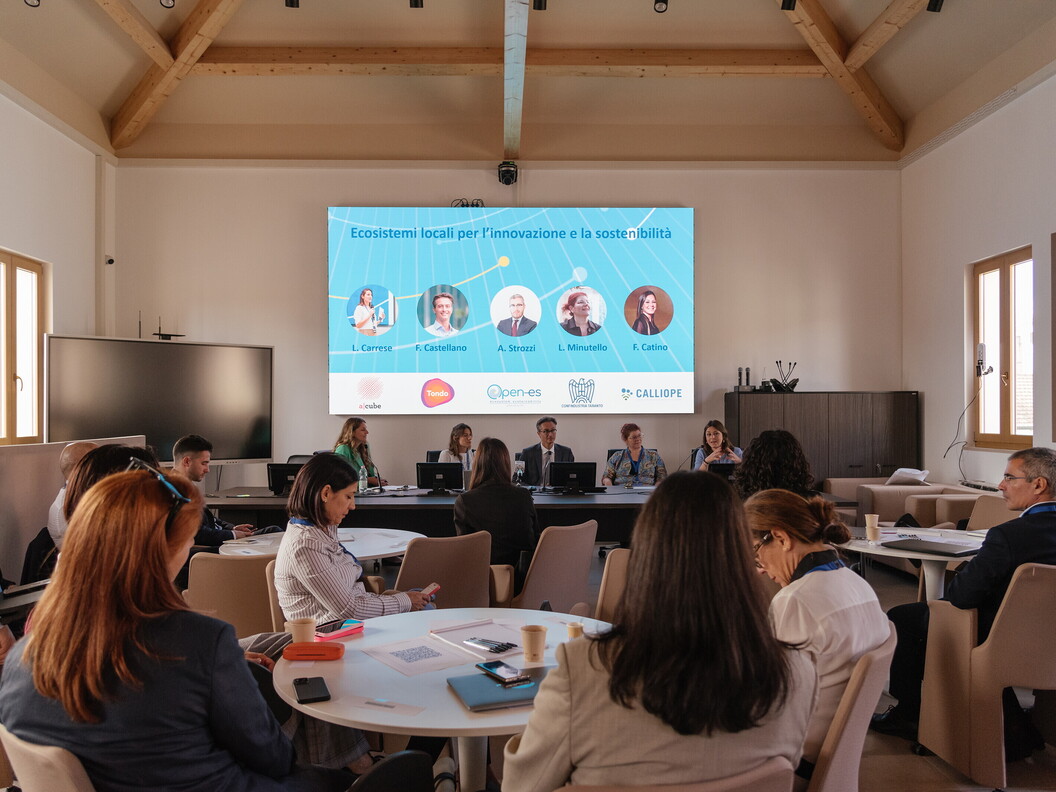 During the event, a panel discussion titled “Local ecosystems for innovation and sustainability” allowed a number of representatives of local organisations to talk about both the projects already carried out and future initiatives.Participants included: Lavinia Carrese from the Faros accelerator of the National Network promoted by CDP Venture Capital, the first Italian accelerator dedicated to startups in the blue economy; Francesco Castellano, founder of Tondo, an organisation dedicated to the circular economy; Lucia Minutello, vice president of Confindustria Taranto with responsibility for Research, Innovation and Equality issues; Feliciana Catino, head of the Innovation and Smart City service of the Municipality of Taranto and administrative manager of the Calliope project (House of Emerging Technologies of Taranto).