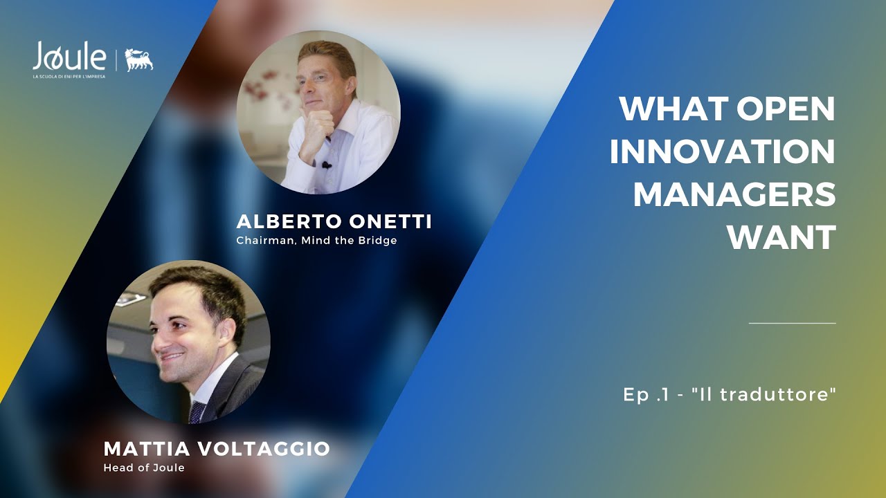 Ne parlano in questo primo episodio Mattia Voltaggio, Head of Joule, la scuola di Eni per l'impresa, e Alberto Onetti, Chairman di Mind the Bridge.